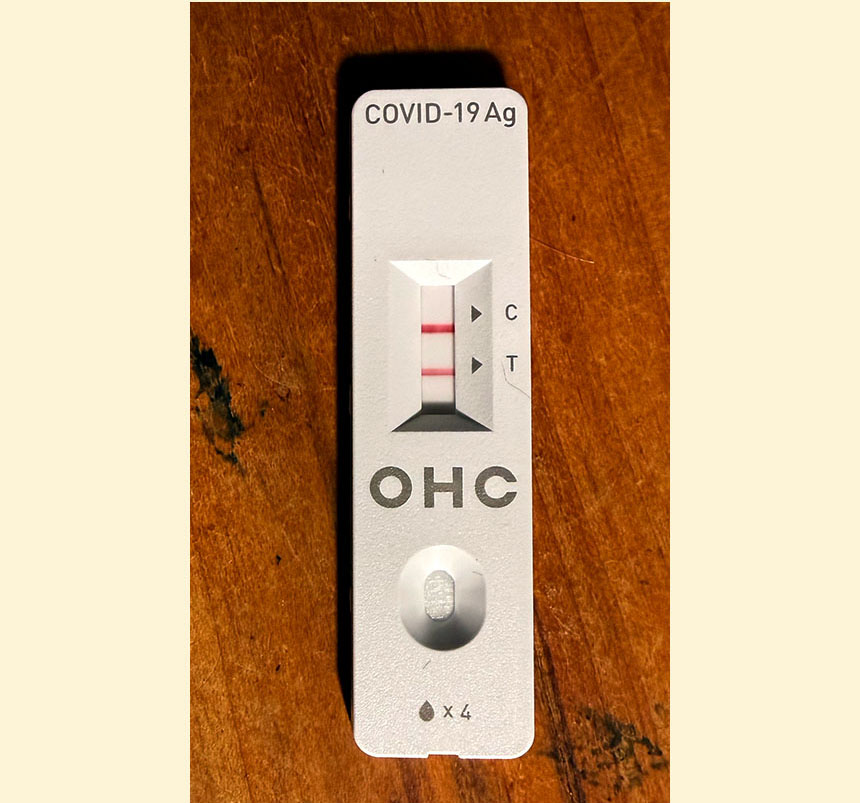 The red line beside the “T” indicates that the Covid test was positive.