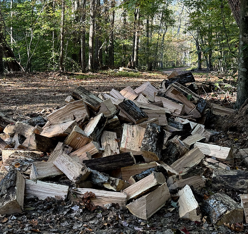 The photo is from my morning ATV ride. An old oak up on the ridge had died. Neighbors sawed it up and split it for firewood. I wish I had the option of heating with wood. But I don’t have a chimney.