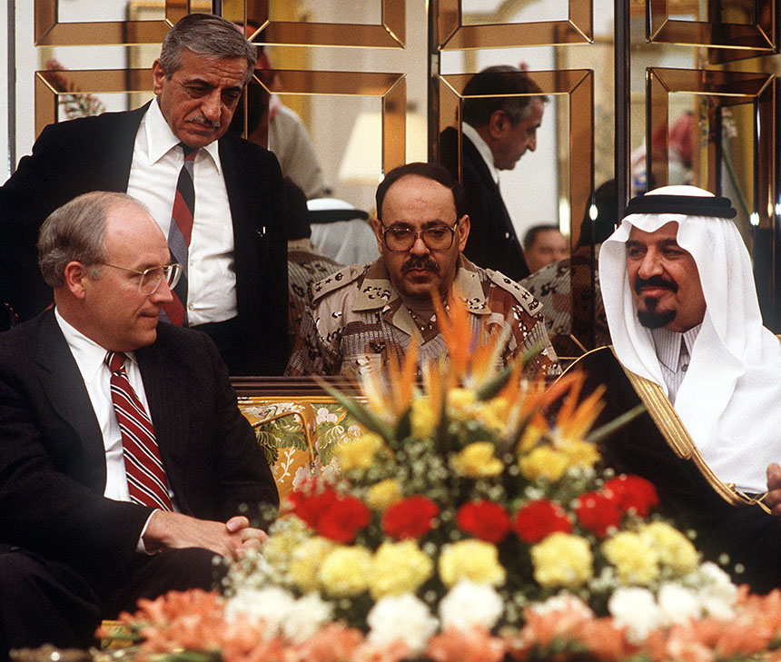 Dick Cheney with some Saudis, 1990. Source: Wikimedia Commons.