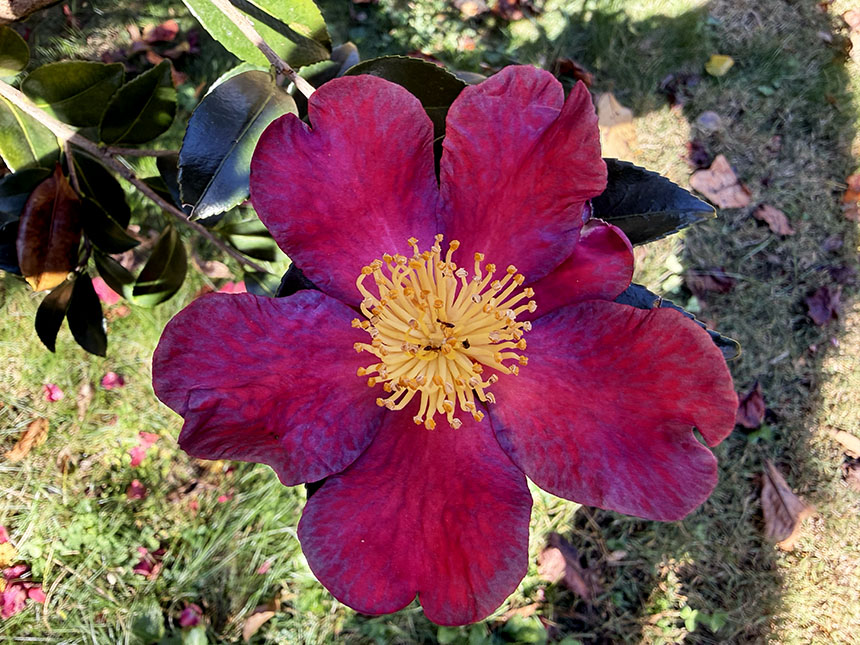 My camellias are blooming. Camellias in bloom always make me think of La Dame aux Camélias, the 1848 novel by Alexandre Dumas fils, which I read in French some years ago. Verdi turned the story into an opera, La Traviata. It’s a tragic story, but Verdi included a happy piece, which also is a waltz.