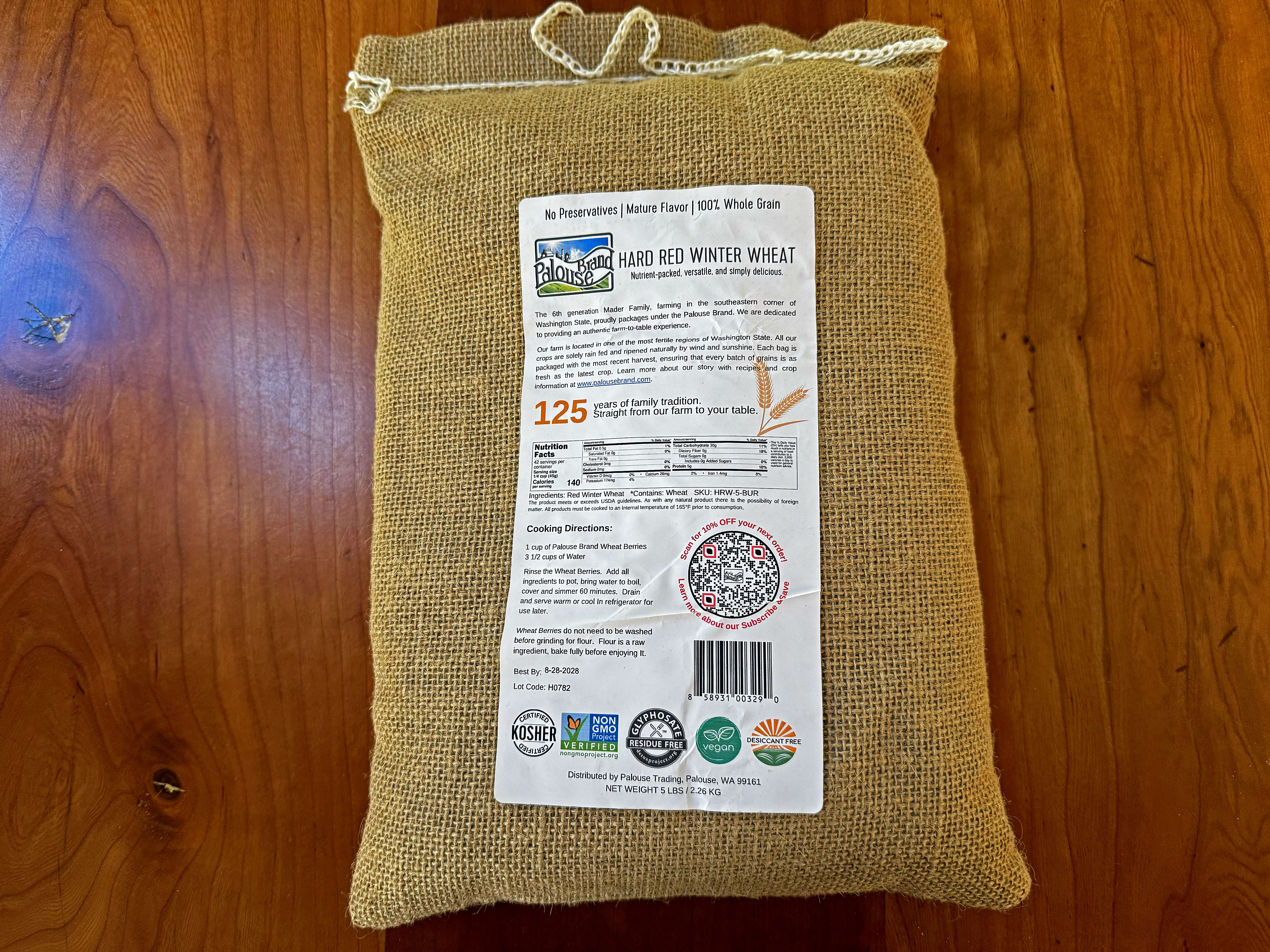 I regularly order wheat berries and hulled barley from Amazon, five pounds at a time, to grind into flour. This time the wheat came in a beautiful burlap bag. It’s a tiny burlap bag, but I haven’t seen a burlap bag in years.