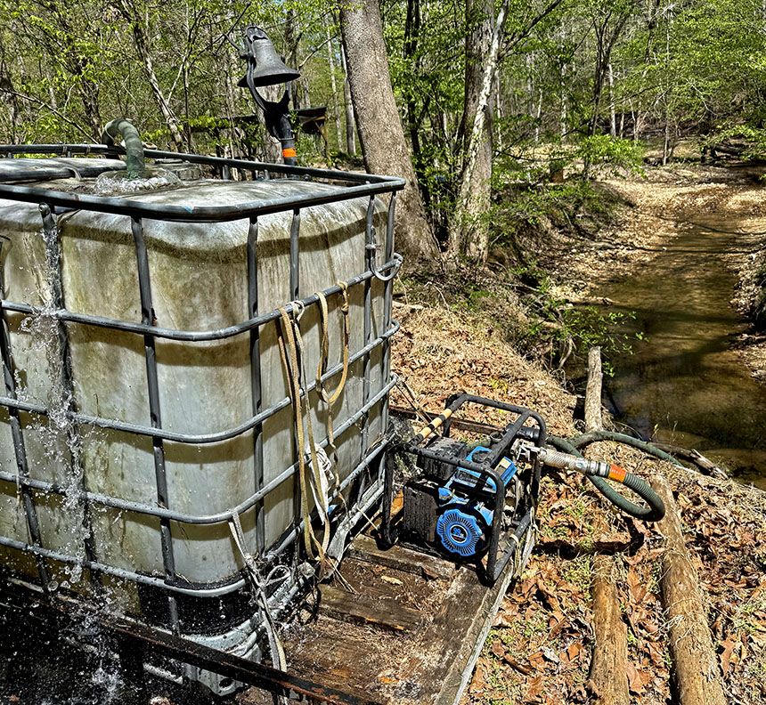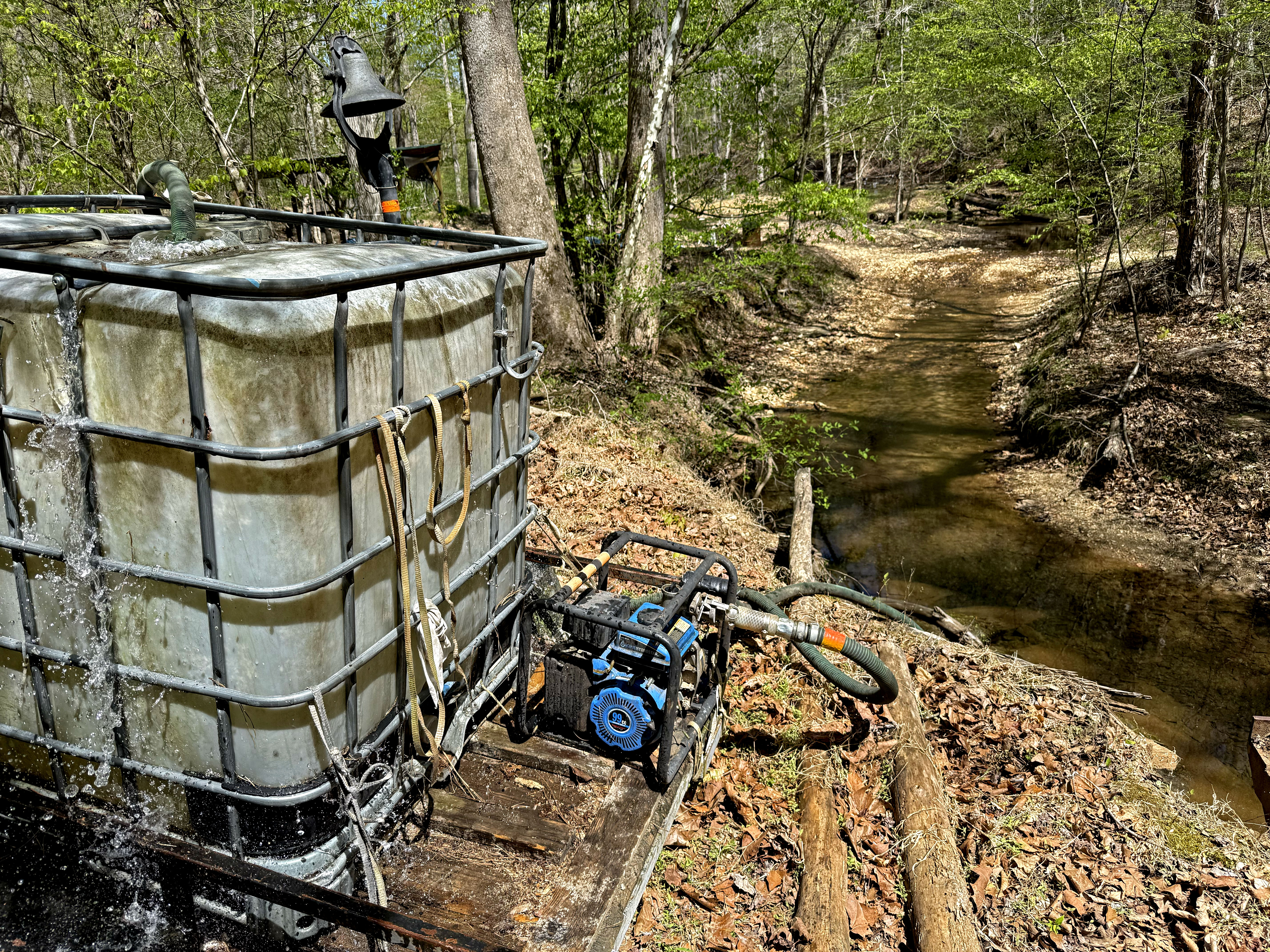 ⬆︎ Filling the water wagon from the creek. Click here for high-resolution version.